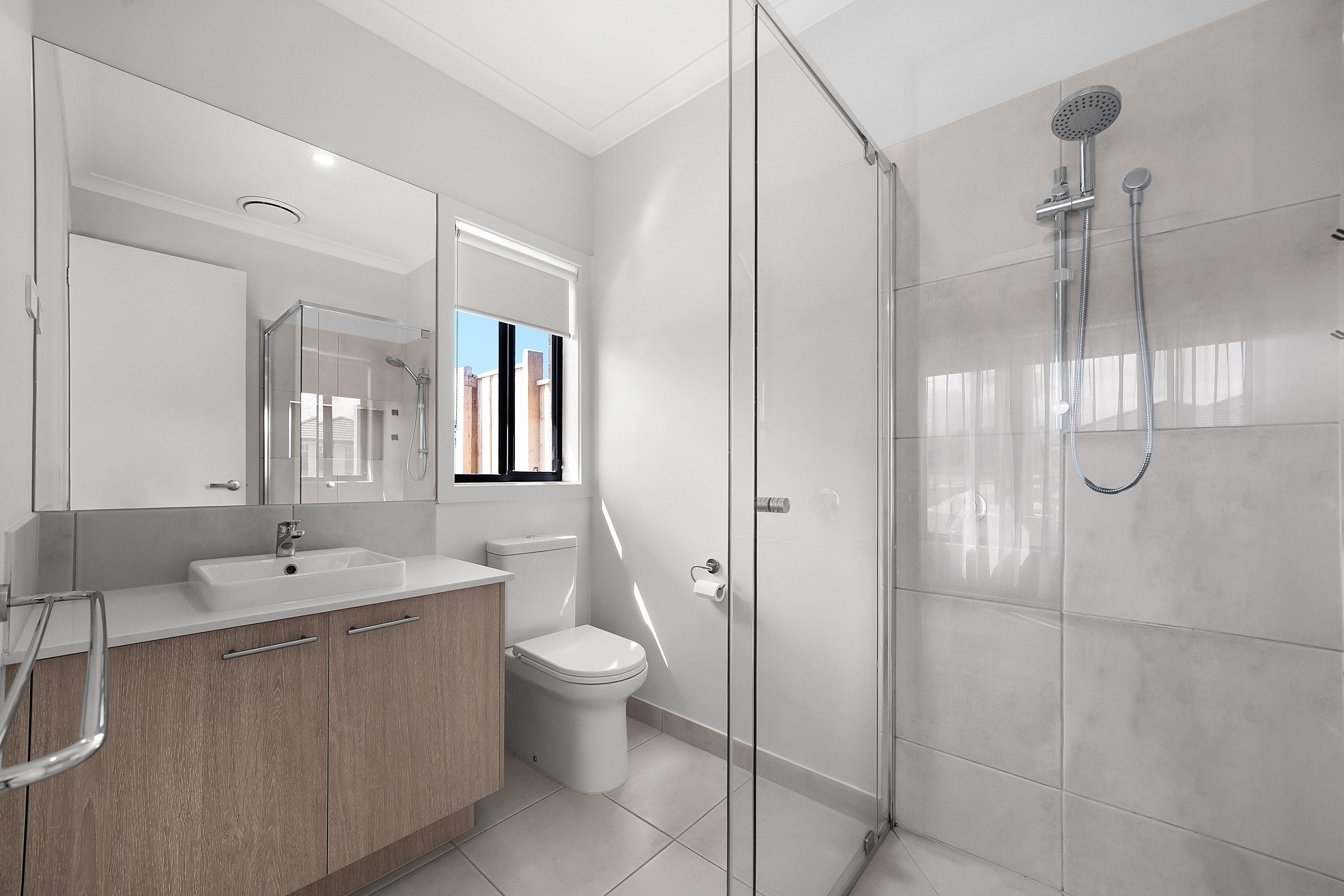 – Master bedroom with walk-in robe, ceiling fan and ensuite with shower, vanity & toilet