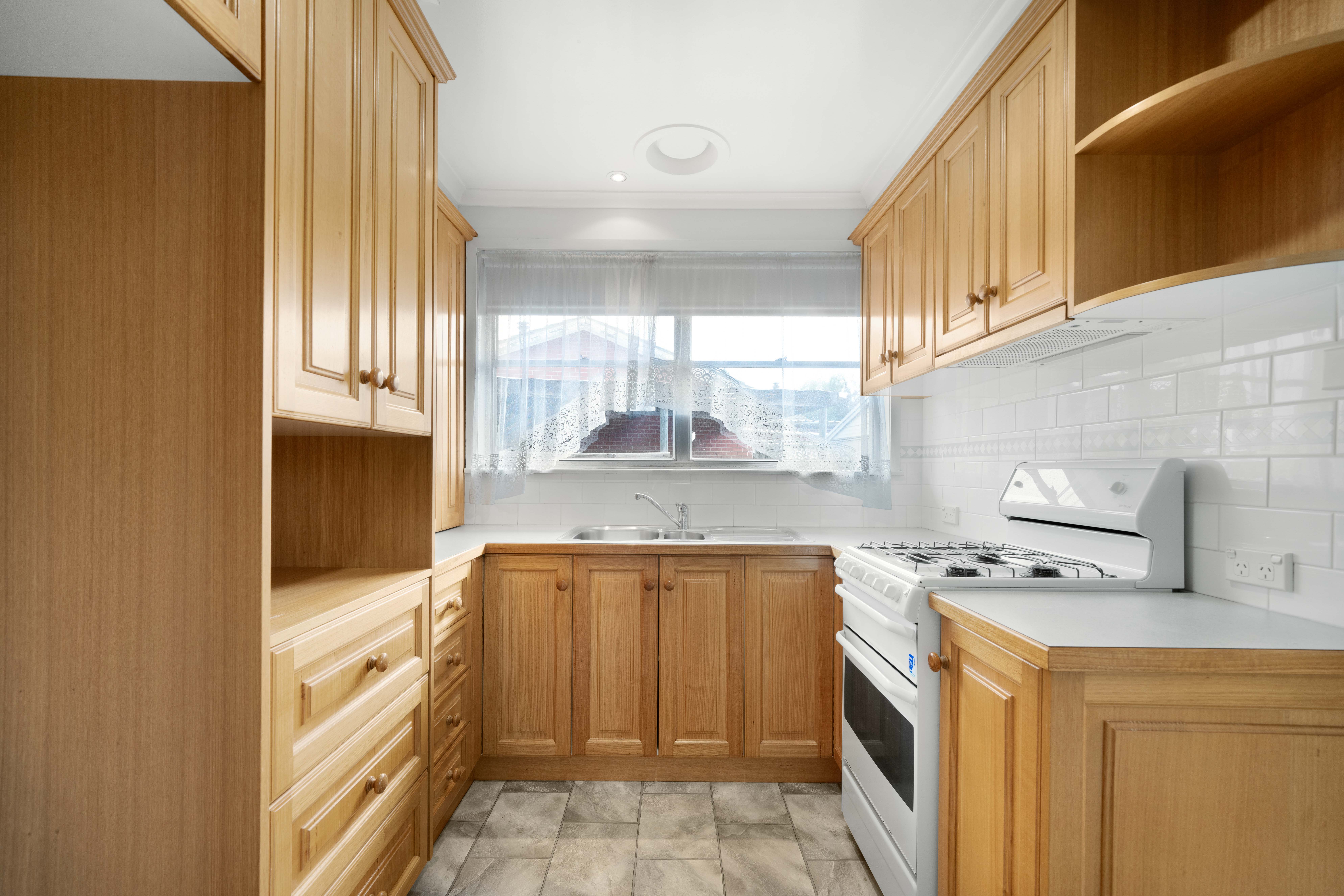 - Functional kitchen with free standing gas oven & stove and plenty of storage cupboards.