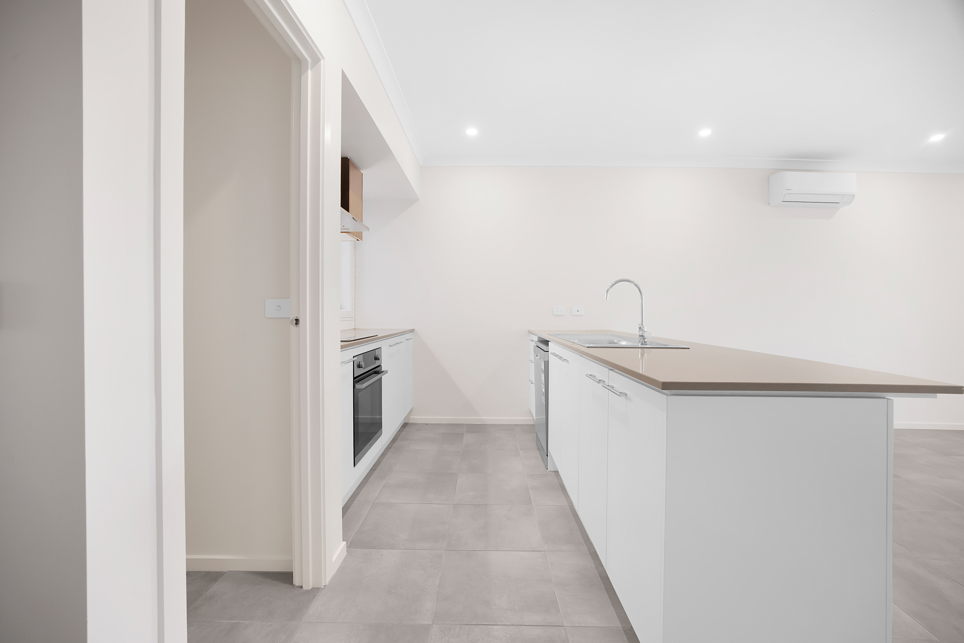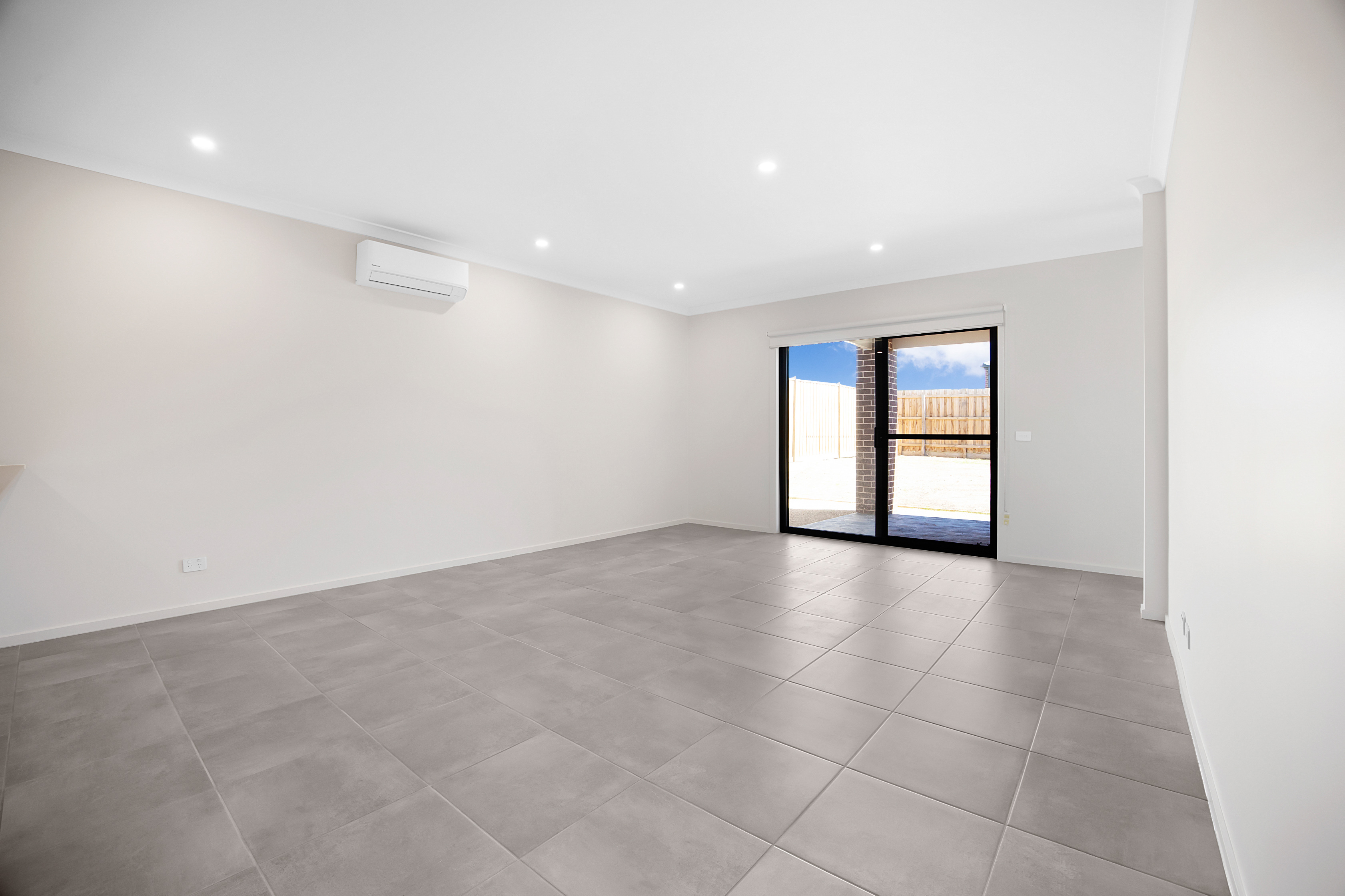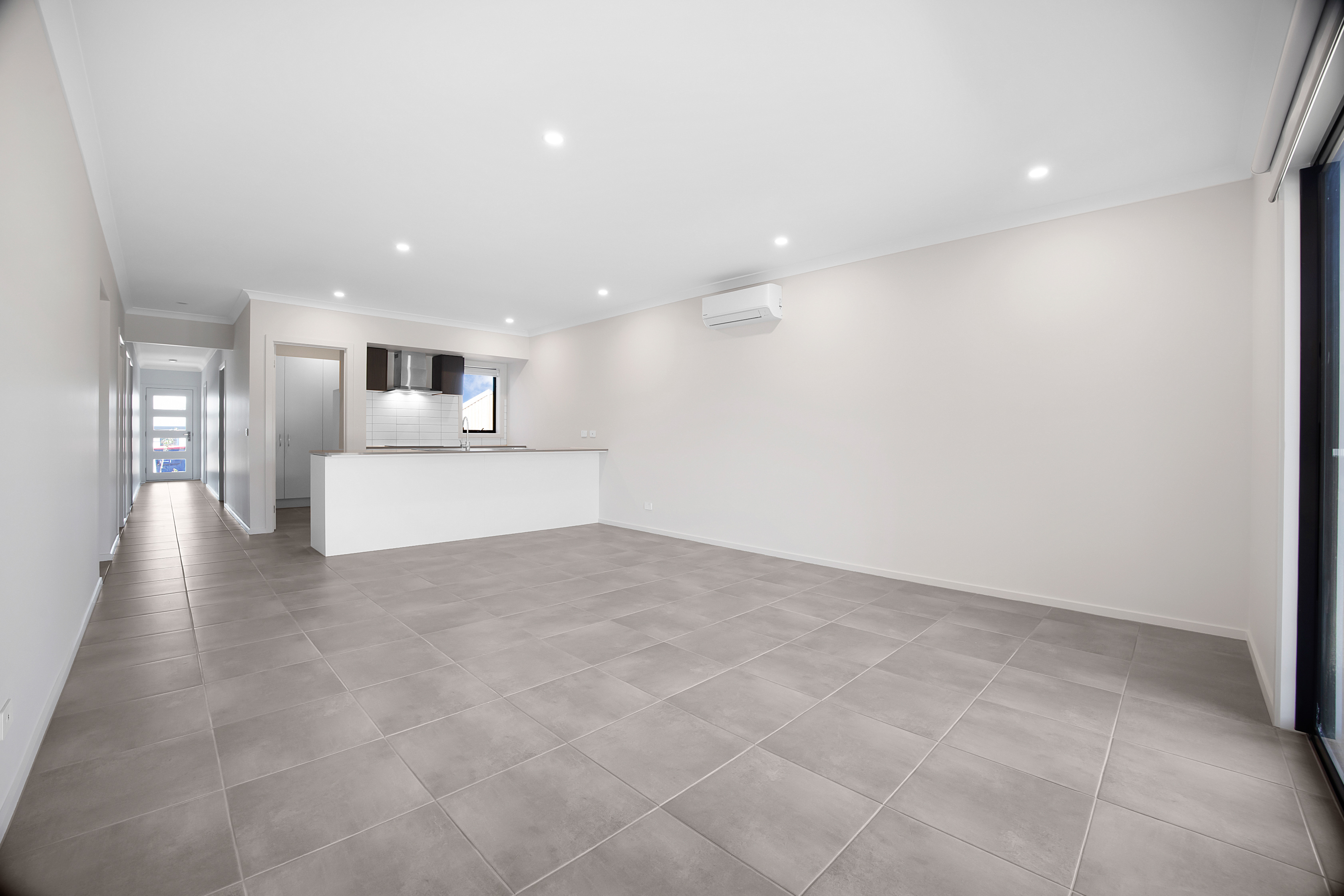 – Open-plan kitchen, living, and dining area that opens into entertaining area