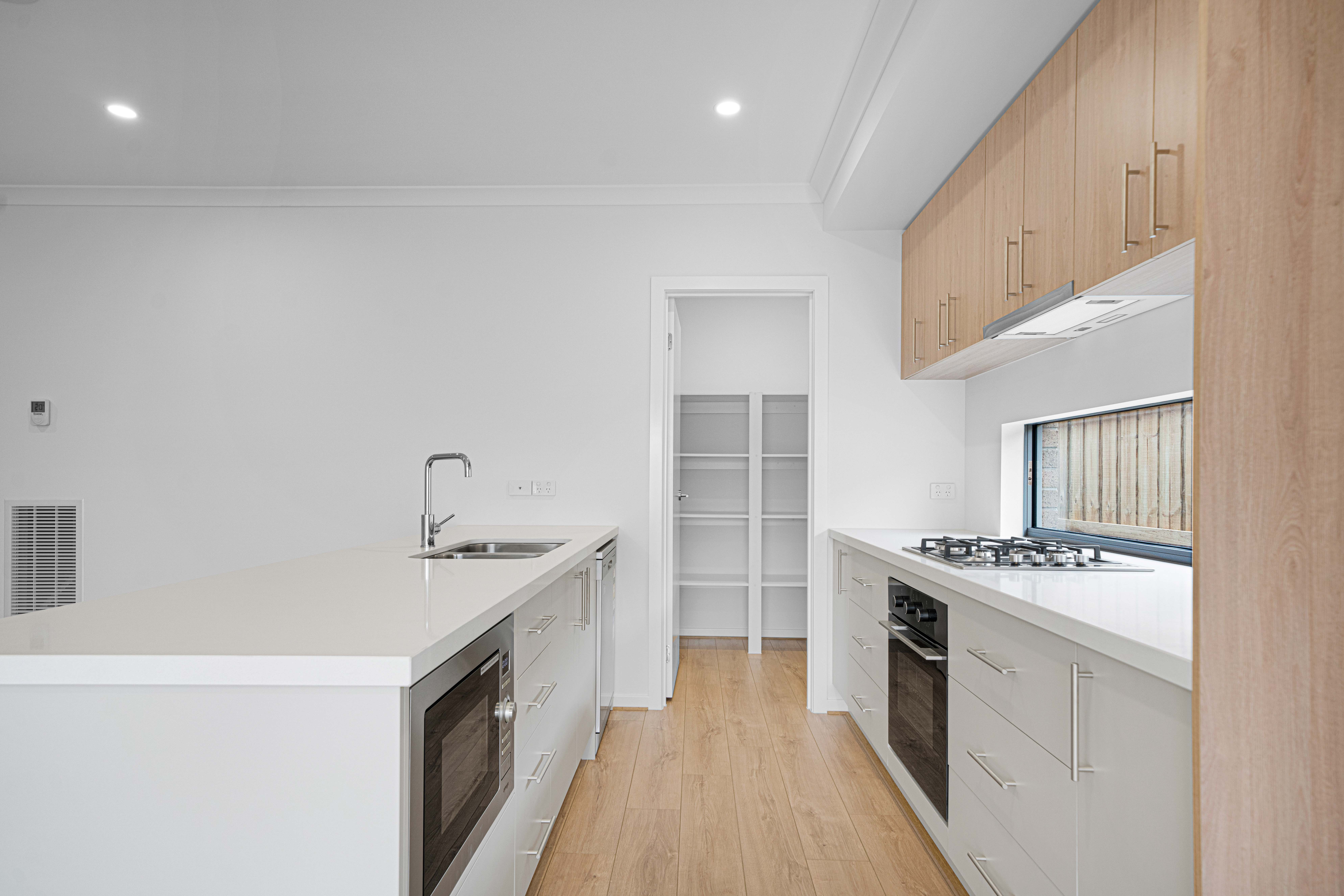- Modern kitchen with stone benchtops, dishwasher, quality appliances and walk in pantry