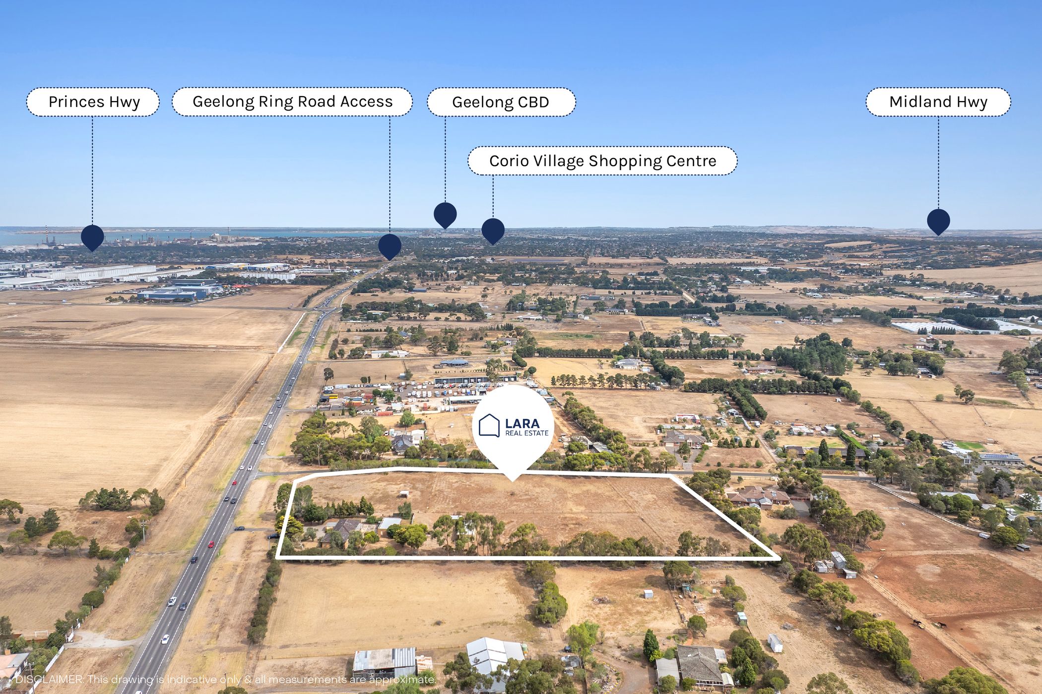 Positioned on a prominent main road within the highly regarded Northern Geelong Growth Area (NGGA), this expansive 5-acre (approx. 2.10ha) property presents a rare opportunity to secure a versatile landholding in Australia's largest growth corridor.